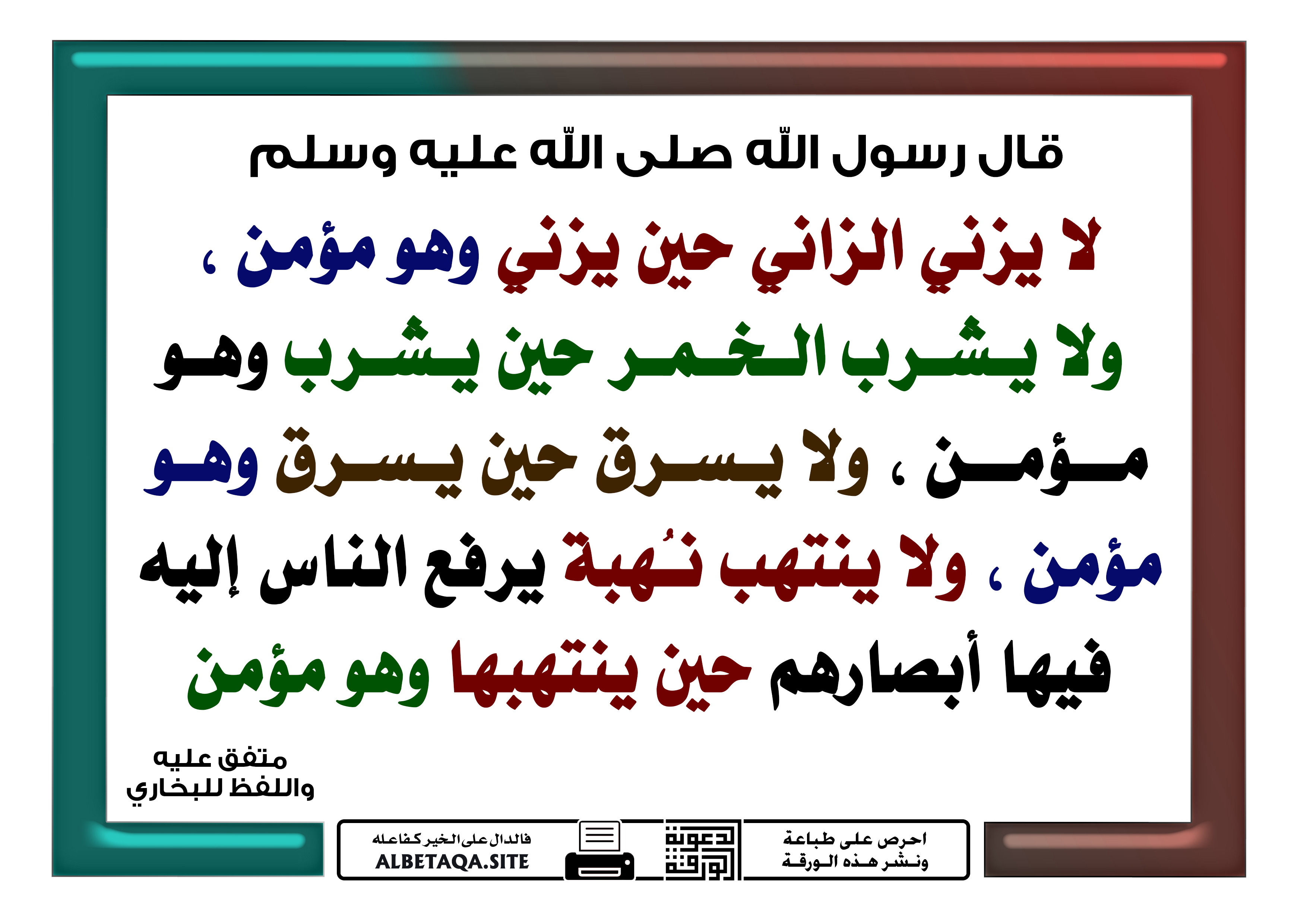 لا يزني الزاني حين يزني وهو مؤمن موقع البطاقة الدعوي